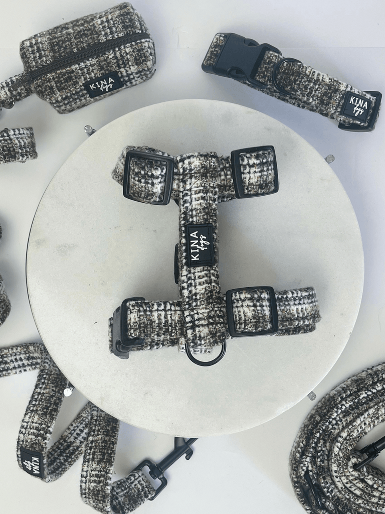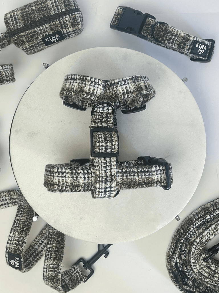 Colección clásica, sofisticada y atemporal. Inspirada en la elegancia del tejido tweed, esta colección combina estilo y confort para que tu perro luzca único en cada paseo. Con tonos neutros y textura acogedora, es la opción perfecta para quienes buscan un look distinguido, versátil y elegante que nunca pasa de moda.