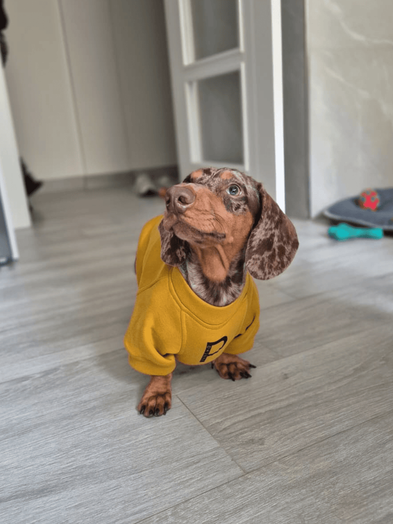 Sudadera para perro realizada a mano súper cómoda con forro polar interior increíblemente suave. Nuestras sudaderas son perfectas para mantener a tu perro caliente y acogedor. Cuentan con una apertura para poder llevar el arnés bajo la sudadera.