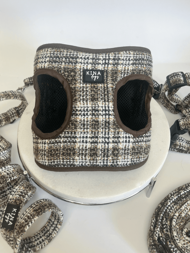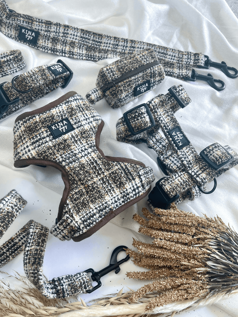 Colección clásica, sofisticada y atemporal. Inspirada en la elegancia del tejido tweed, esta colección combina estilo y confort para que tu perro luzca único en cada paseo. Con tonos neutros y textura acogedora, es la opción perfecta para quienes buscan un look distinguido, versátil y elegante que nunca pasa de moda.