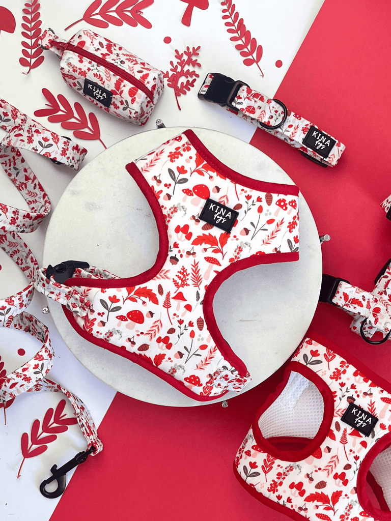 Colección que nace de la magia del bosque, donde la naturaleza se viste de tonos intensos y vibrantes. Inspirada en las hojas rojas, las setas y los pequeños detalles que hacen único cada paseo, esta colección transmite frescura, aventura y un toque encantado. Perfecta para quienes disfrutan explorar con su perro rodeados de naturaleza y color.